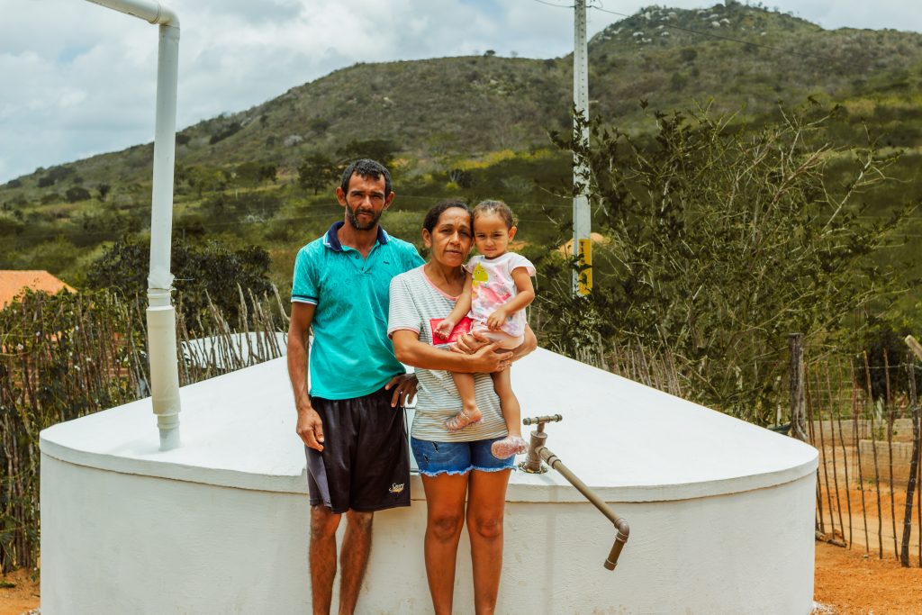 Família beneficiada com cisterna de água potável, dentro do projeto Água para Vidas, no município de Riacho das Almas. Pernambuco, Brasil – Inara Novaes/Acervo Habitat Brasil, 2023